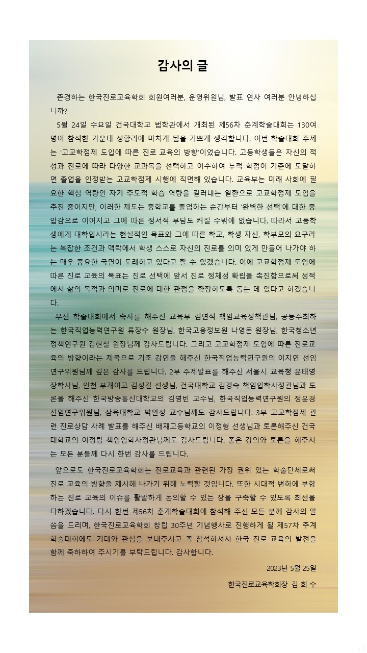 [한국진로교육학회] 제56차 춘계학술대회 개최에 따른 감사의 글